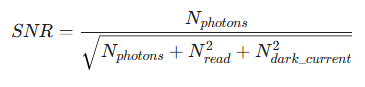 A relação sinal-ruído (SNR) em algoritmos ISP pode ser descrita por: