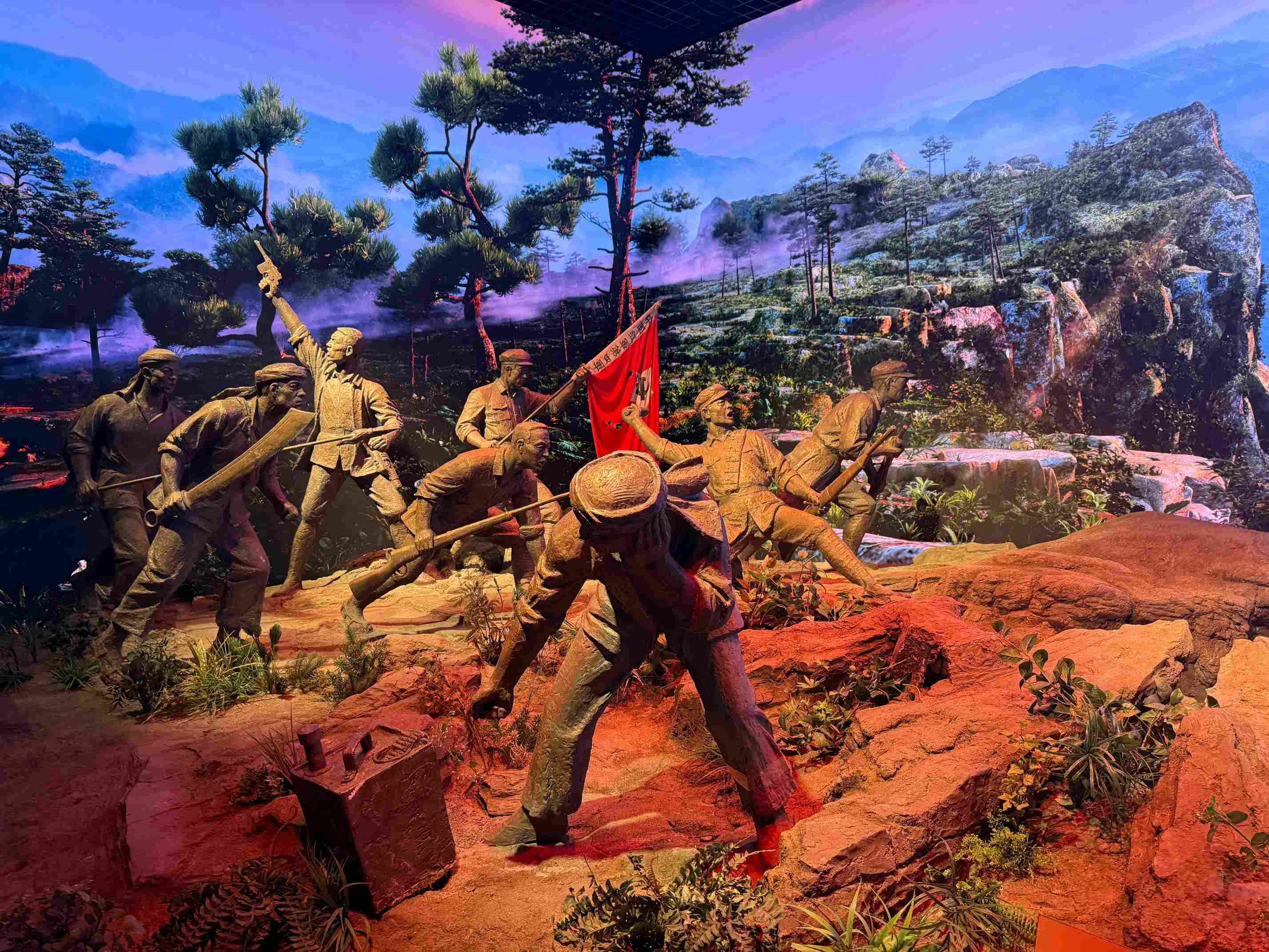 Escalando Huangyangjie: herdando a vontade de lutarNa manhã seguinte, a equipe caminhou até o cume do Huangyangjie. No topo do pico envolto em névoa, o grupo relembrou as heróicas batalhas defensivas em que o Exército Vermelho se manteve firme contra todas as adversidades. Ao longo do percurso, os membros da equipa apoiaram-se e encorajaram-se mutuamente, transformando a coragem dos seus antecessores em motivação pessoal. Este desafio físico partilhado aprofundou a confiança e o relacionamento, promovendo uma profunda apreciação pela resiliência necessária para perseverar em ambientes difíceis.