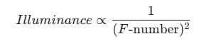 Ao comprar ou fabricar equipamentos de segurança, é fácil olhar para uma lente F2.0 e uma lente F1.0 e pensar:“É apenas uma diferença de 1,0, certo?”Errado. No mundo da óptica, os números f não são escalonados linearmente. O número f (ou razão focal) é a razão entre a distância focal da lente e o diâmetro da pupila de entrada. A fórmula para o poder de captação de luz (iluminância) de uma lente determina que a quantidade de luz que atinge o sensor é inversamente proporcional ao quadrado do número f: